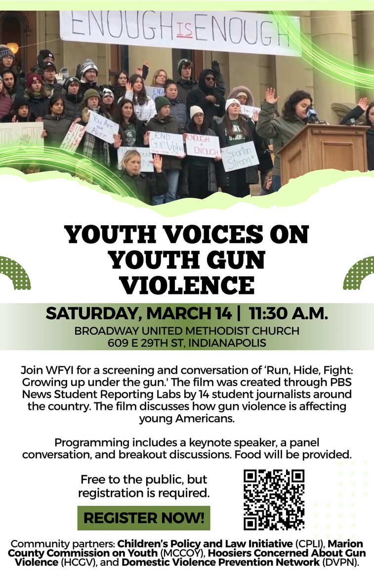 Join WFYI for a screening and conversation on March 14 of ‘Run, Hide, Fight: Growing up under the gun.' The film was created through PBS News Student Reporting Labs by 14 student journalists around the country. The film discusses how gun violence is affecting young Americans.